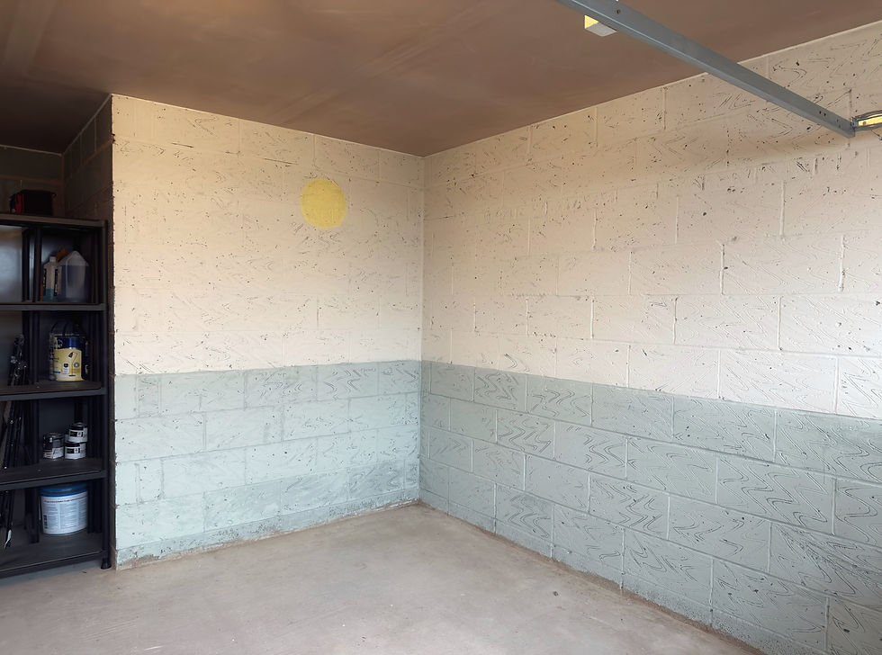 When I first looked at the room, it was completely raw — concrete floor, grey brick walls, a single light source, and shelves holding tools and materials. It wasn’t designed for art, but it had something important: space and possibility.